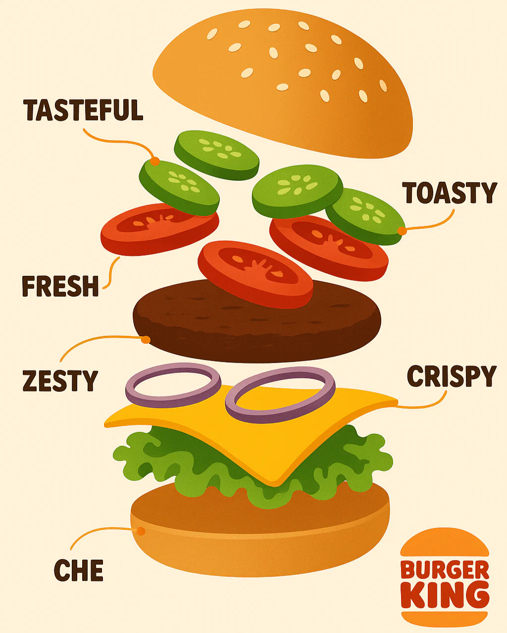 At Burger King, we’ve been serving up bold, flame-grilled flavor since 1954. Every burger is crafted with care—fresh vegetables, juicy patties, melted cheese, and our signature toasty buns—because you deserve nothing but the best.